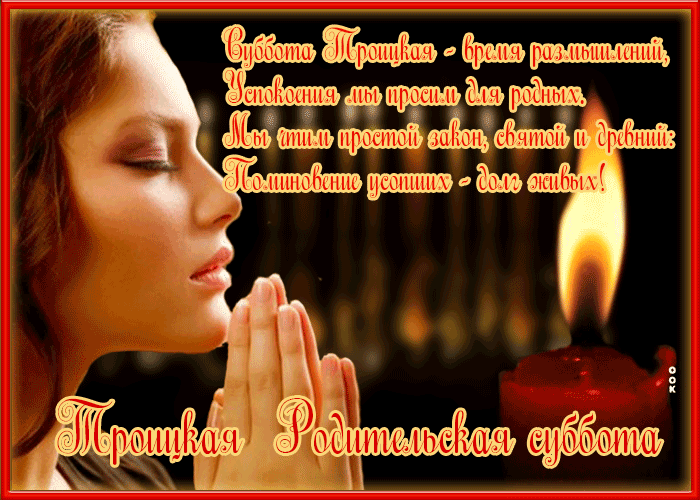 Лейтмотивом молитв об усопших на троицкую родительскую субботу становится прошение о прощении грехов. Что нельзя в троицкую родительскую субботу? В православном календаре значится 8 родительских суббот в году. Но на родительскую обращается особое внимание и подчёркивается важность молитвы за ушедшего родственника. Дизайнерские открытки и чуткие слова поддержки. Родительские субботы в 2021 году выпадают на следующие даты: Родительскими дни именуют потому, что все усопшие считаются ушедшими к родителям, предкам. Троицкая родительская суббота в 2021 году будет 19 июня. Родительские субботы лучше всего подходят для ухода за местами погребения близких людей. В этот день вся полнота церкви молится об упокоении душ умерших православных христиан. Вообще, каждая суббота в церкви посвящена поминовению усопших. Родительская суббота 19 июня — особенный день для верующих. Троицкая родительская суббота в 2021 году приходится на 19 июня.